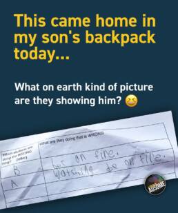 So this paper came home in my son’s backpack today. No context whatsoever. I’m trying to picture the image he was…