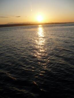 The cruise itself was fantastic, complete with a 5-course meal, a live 4-piece band and ballroom dancing to boot. The food was terrific, the music was perfect, and the company was as pleasent as they come. We cruised from Seattle, up to Shoreline, out to Alki (West Seattle) and back. It lasted from about 7:30 to 10:00pm and we never saw a single cloud in the sky.